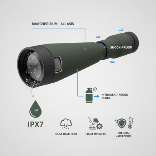 Une longue‑vue doit résister aux manipulations fréquentes, à la poussière, aux chocs légers et aux variations thermiques :
